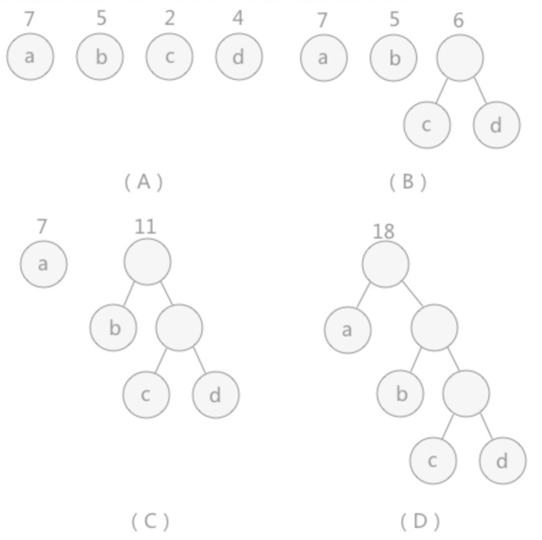 当用 n 个结点(都做叶子结点且都有各自的权值)试图构建一棵树时,如果构建的这棵树的带权路径长度最小,称这棵树为“最优二叉树”,有时也叫“赫夫曼树”或者“哈夫曼树”。